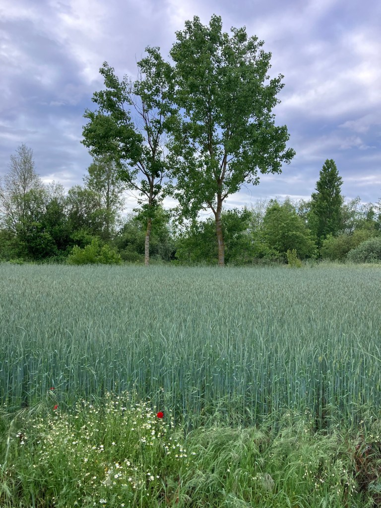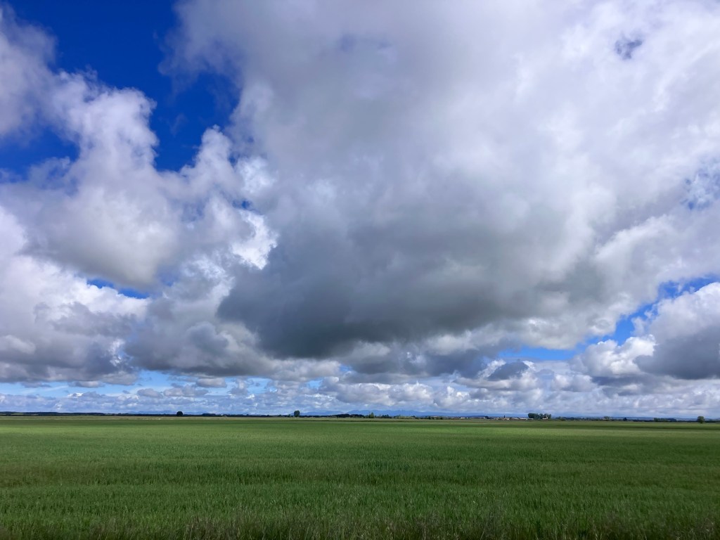 Back to the path, the long straight path…and the friendly greetings as people passed me: do you think we missed an arrow? Kia ora, I went to New Zealand, I loved it. (Someone who must have noticed the flag on my pack) Don’t miss the turn up here! Is it flat enough for you?