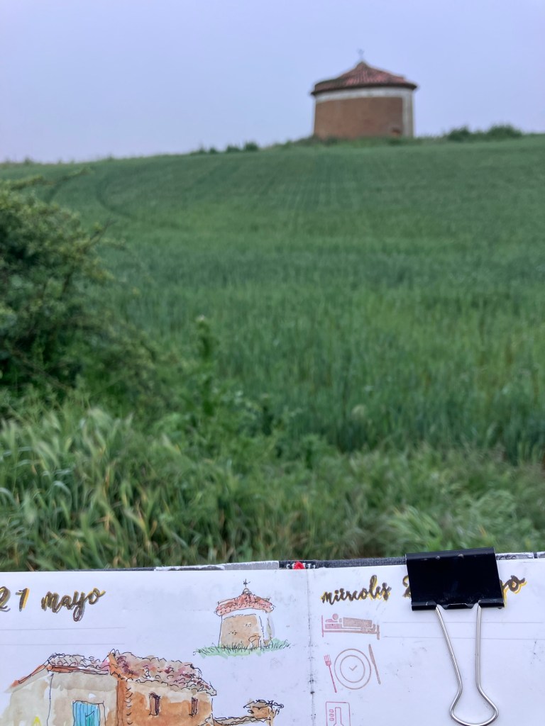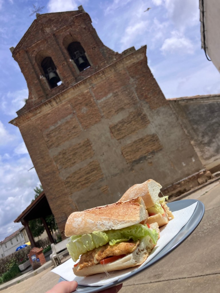 Today was no different. At one point the Camino path takes you across the road away from the town that looks tantalisingly close. There’s good reason (to visit an ermita and the halfway monument), but I had a better reason to NOT cross the road and keep heading straight – the body was struggling and wanted the shortest route to the end!