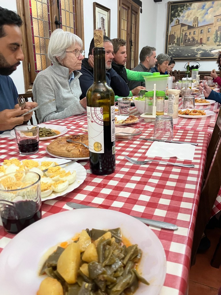 I arrived pretty late (4:30), so just had time to nip across to the supermarket to buy something to contribute to the communal dinner before the 5pm coffee and chat that the Marist Brothers host. It’s a simple format – each person shares their name, country of origin and how they heard about the Camino. Then everyone gets to choose a card with a symbol on it that somehow describes their Camino, and they are invited to share. There were some very vulnerable answers shared – it was a gift to be part of.