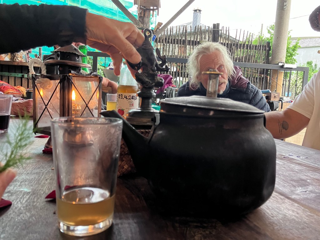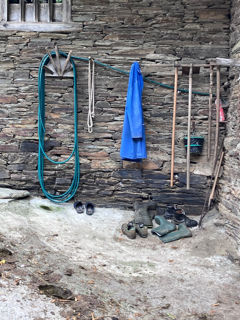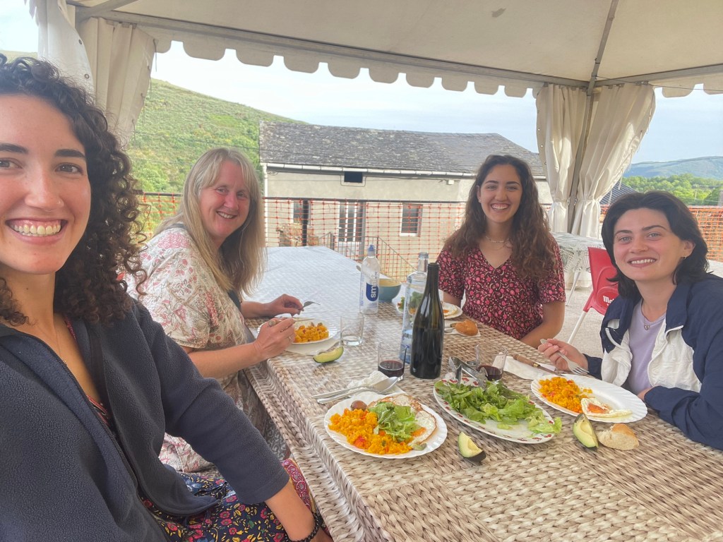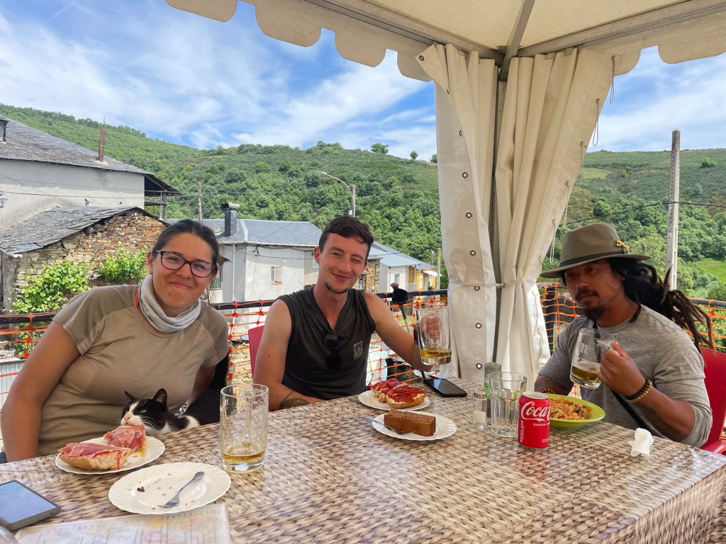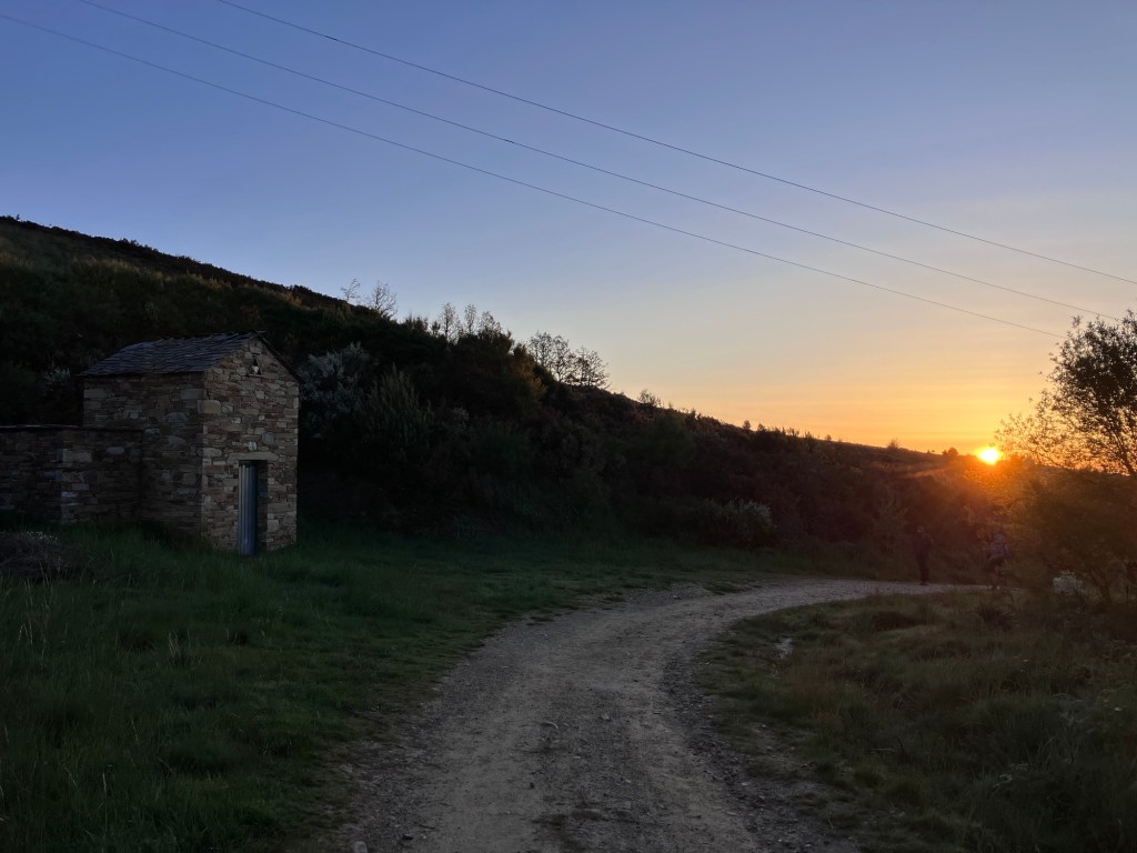 The place was aptly described as hippy-ish. It’s in a makeshift shelter because the owner’s Refugio burnt to the ground two years ago – he’s rebuilding it, and cooks a vegetarian dinner for up to ten pilgrims each evening. Produce from his garden. Alcohol homemade. Tea brewed with mint, fennel and cayenne pepper from the village.