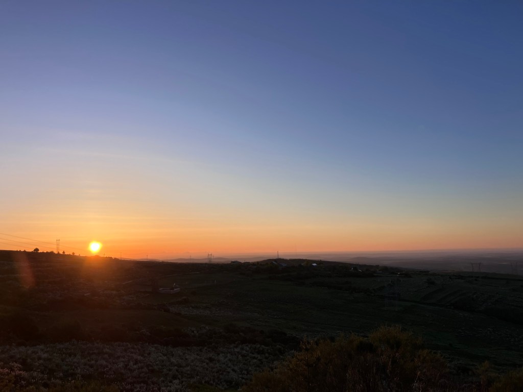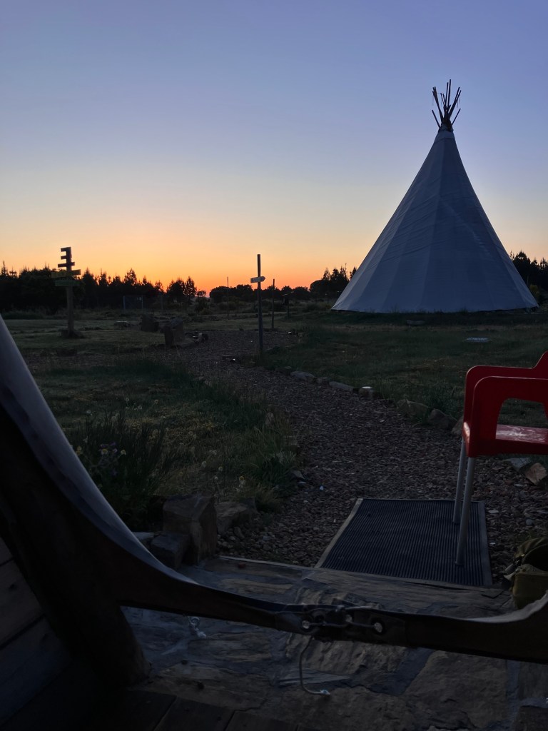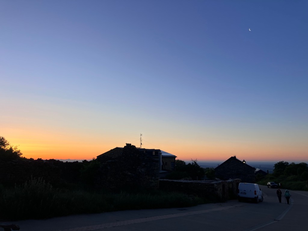 I had intended to get up early to be up at the iron cross by sunrise, but all was quiet in the dormitory and I didn’t wake until 6:30. Sunrise was at 6:50 so I knew I wouldn’t make it, but I jumped out of bed, gathered all my stuff and stealthily left the dorm, disturbing no one. Fastest pack ever and I stepped outside to a winking moon: