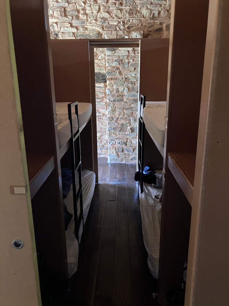 The tour didn’t take long – one large cold dormitory with bunks, an internal washing line and the kitchen (a microwave, a glass, a plate, a knife and a fork), with four toilets, showers and sinks and a clothes washing sink in a room at one end.