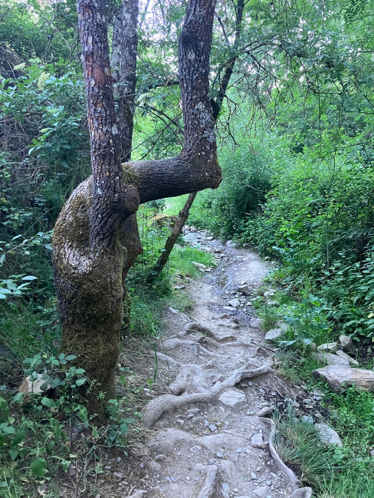 Immediately after crossing the river you have to choose whether to walk the valley floor beside a road or take the mountain alternative.