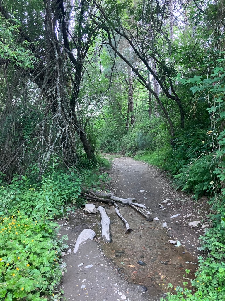 The rest of the day was spent almost exclusively road walking, with a soundtrack made up variously of traffic noise from a nearby (and sometimes far overhead) major highway and babbling brooks-streams-rivers that we repeatedly crossed.