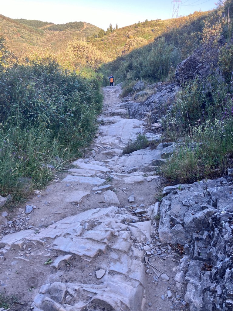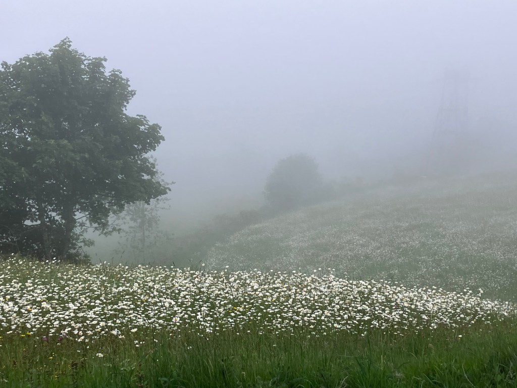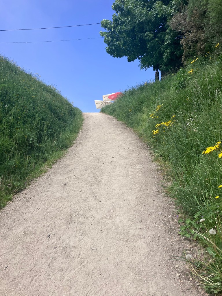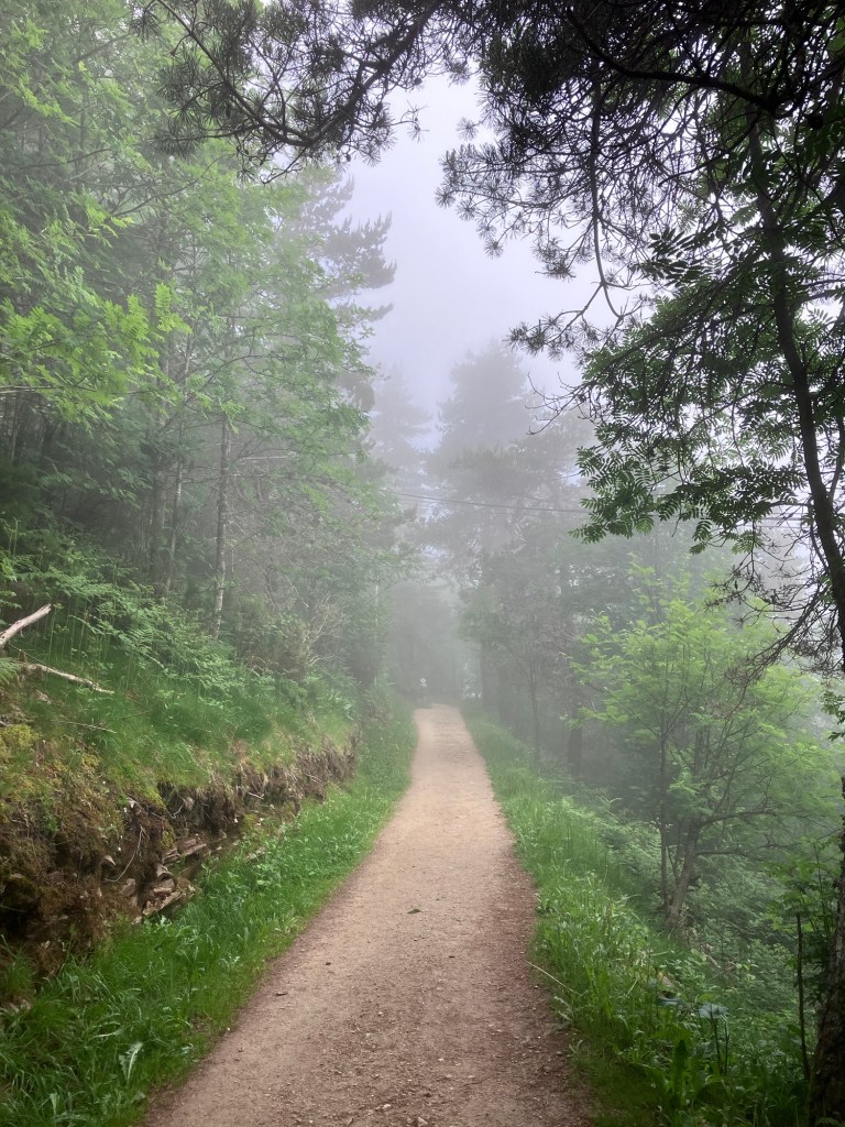 By now I was certain the fog was behind us, and I was also certain I had misremembered about it all being downhill. There had already been ups and downs, which everyone had been commenting on….and then there was one more