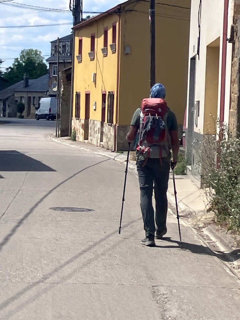 I say “we”. I was not actually walking with anyone, but had some interactions with a Spanish family with two children, two older Spanish guys who untangled my hat which was attached to my pack so I didn’t have to take my pack off, and an American guy…