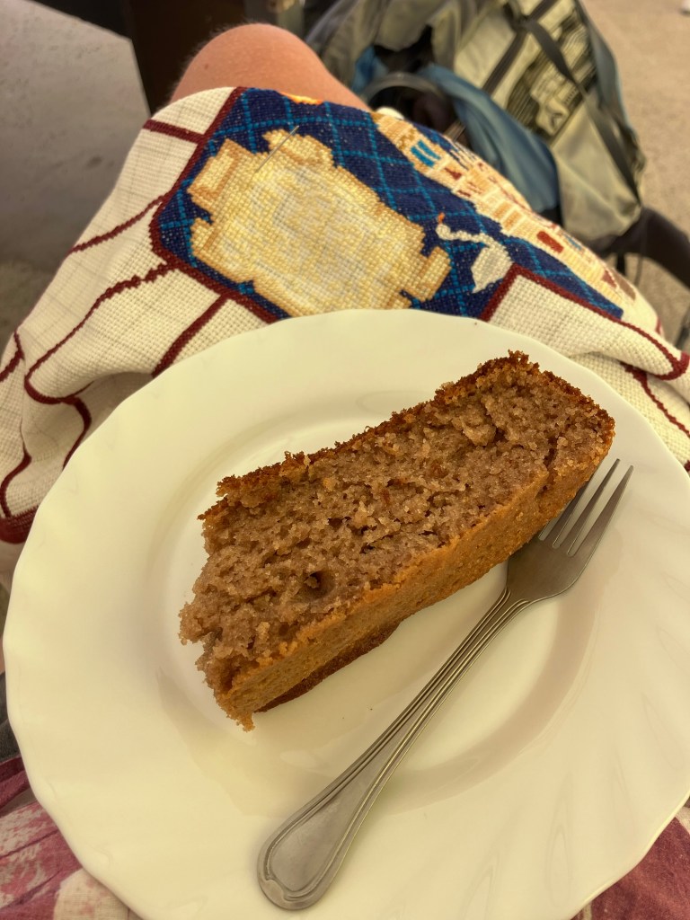 The two pilgrims before me took the last two pieces of chestnut cake, but the Albergue/bar owner said she’d bake another. In under an hour and a half she delivered me a piece, warm from the oven.