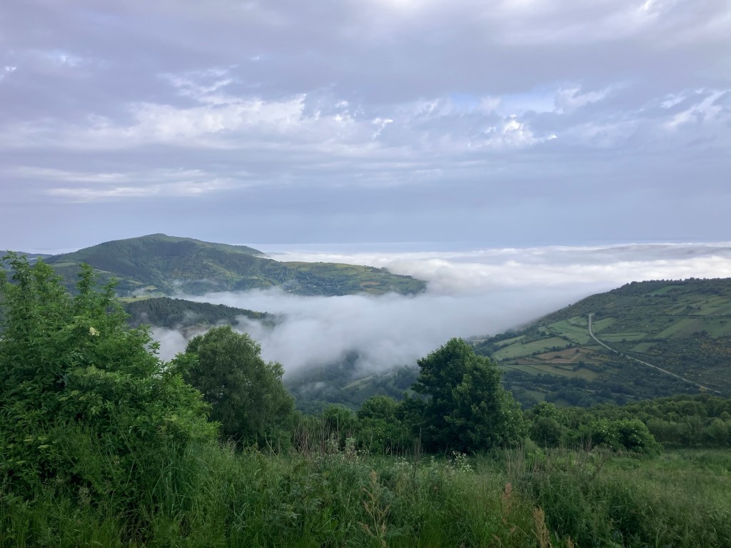 So for me the day was downhill fog, green and villages…plus monastery and one more thing: –