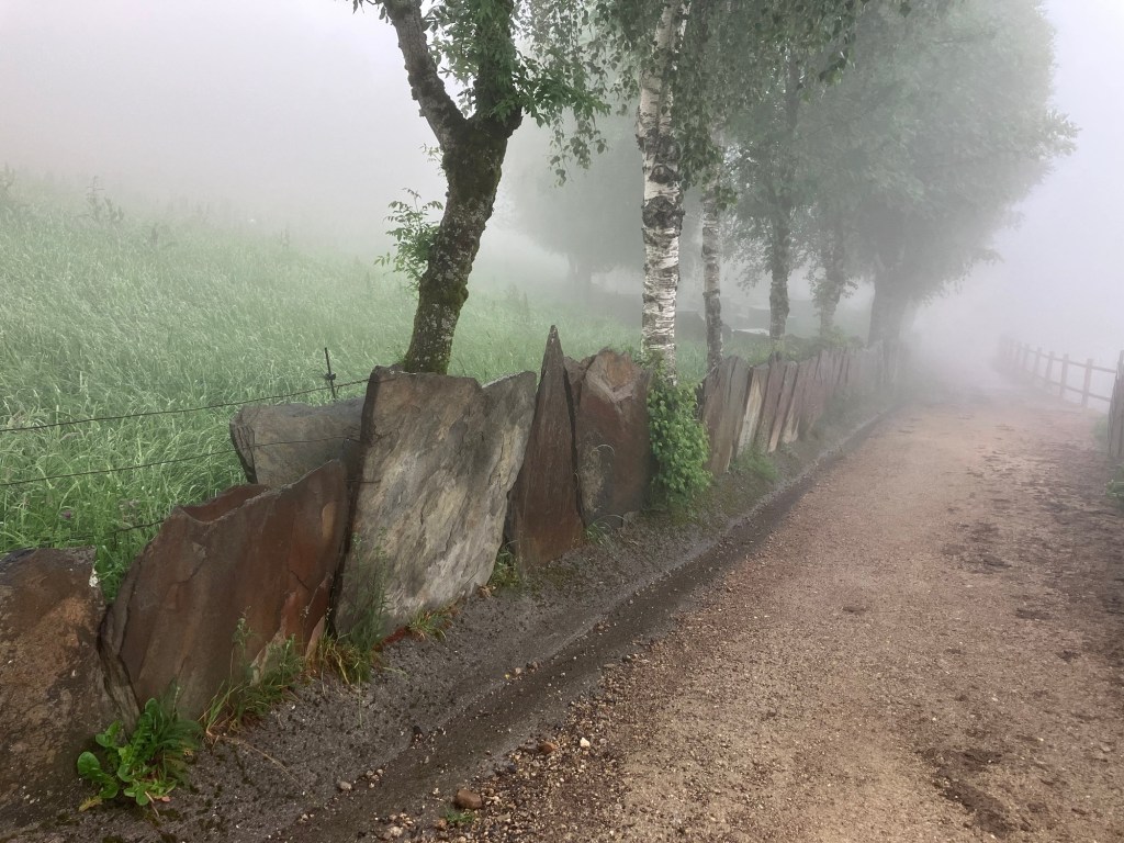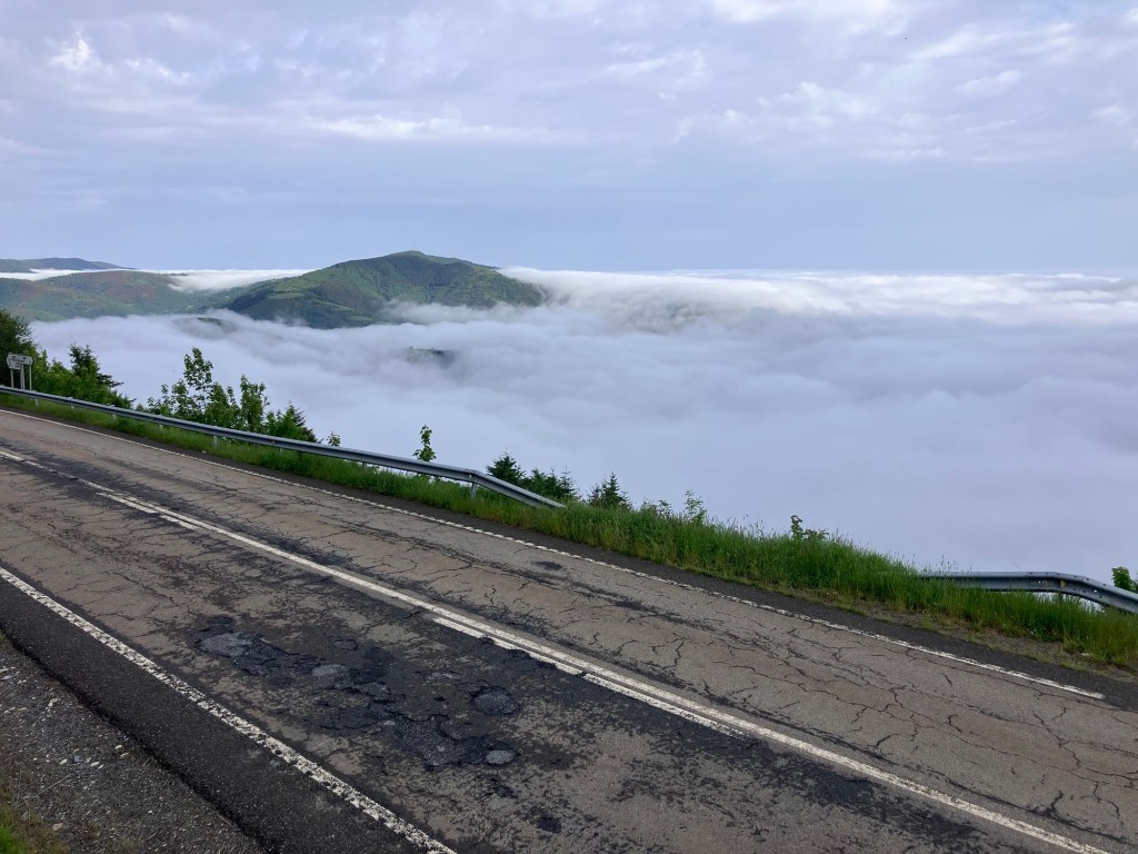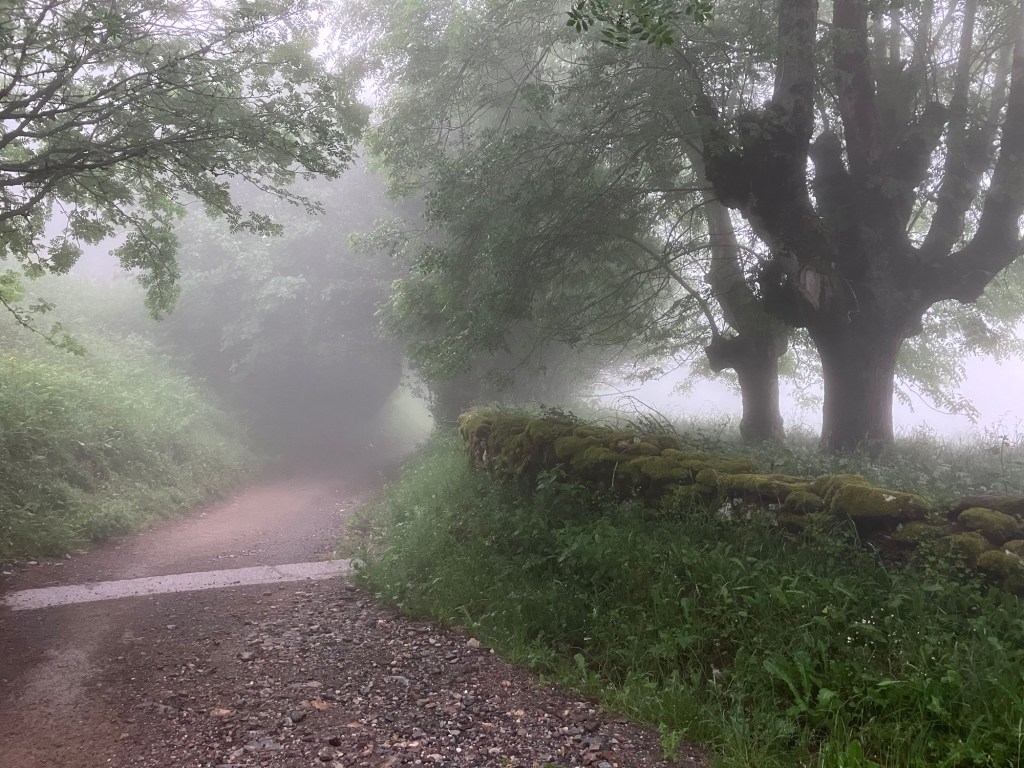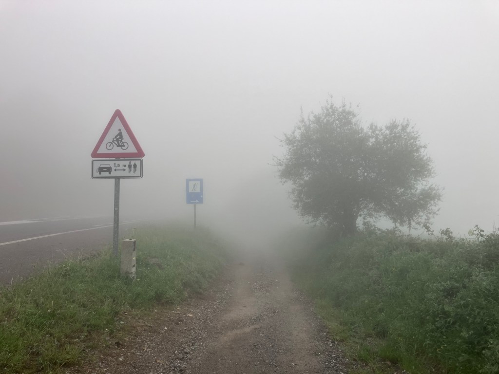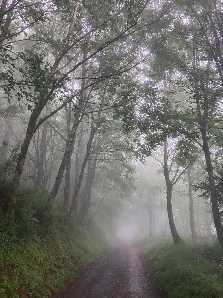 When I’d finished and was ready to set off, the family with kids and two older gentlemen said goodbyes as if we had been lifelong friends! There was just another 4km to go after this, and it went slowly, because I kept stopping to watch the fog swirling around. It danced up the road.