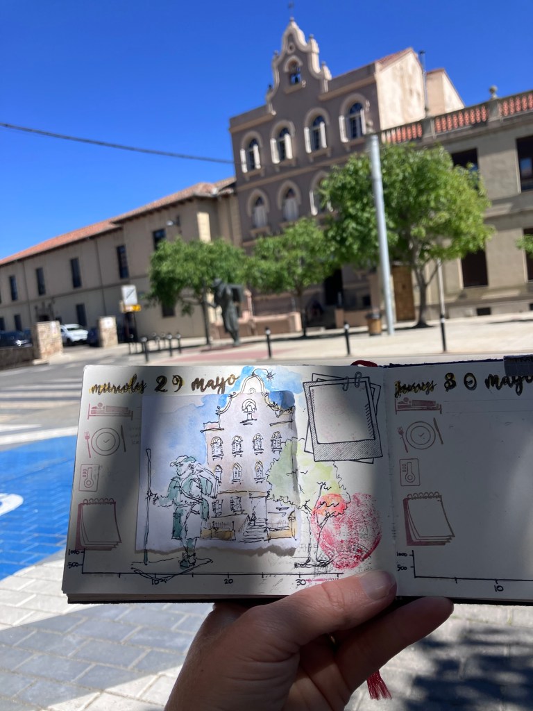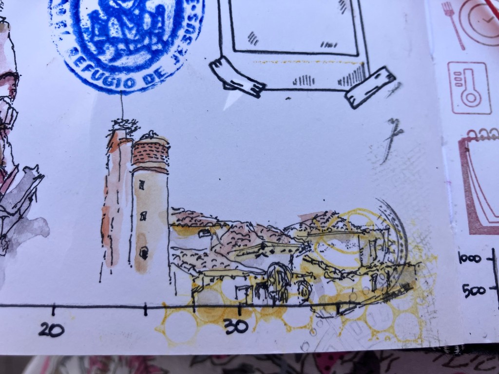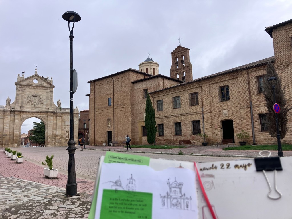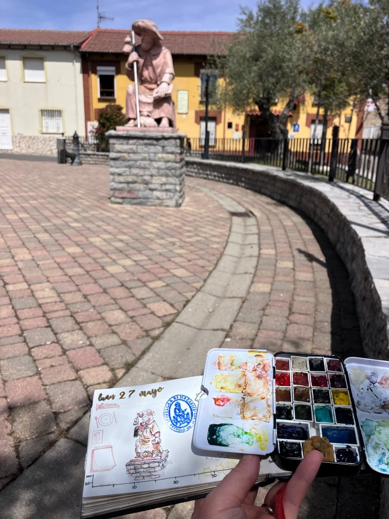 I’m staying in the same hostel and sketched the statue where everyone lined up for our first Camino photo – it looks a bit lonely on its own.