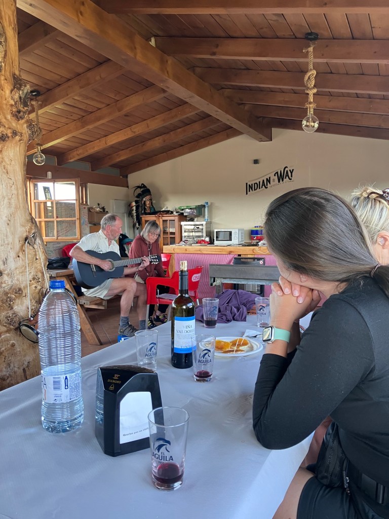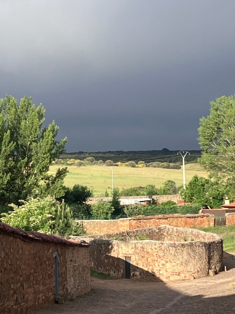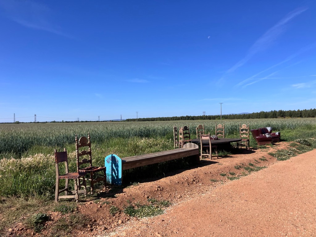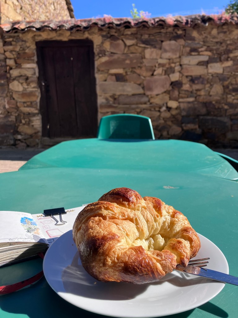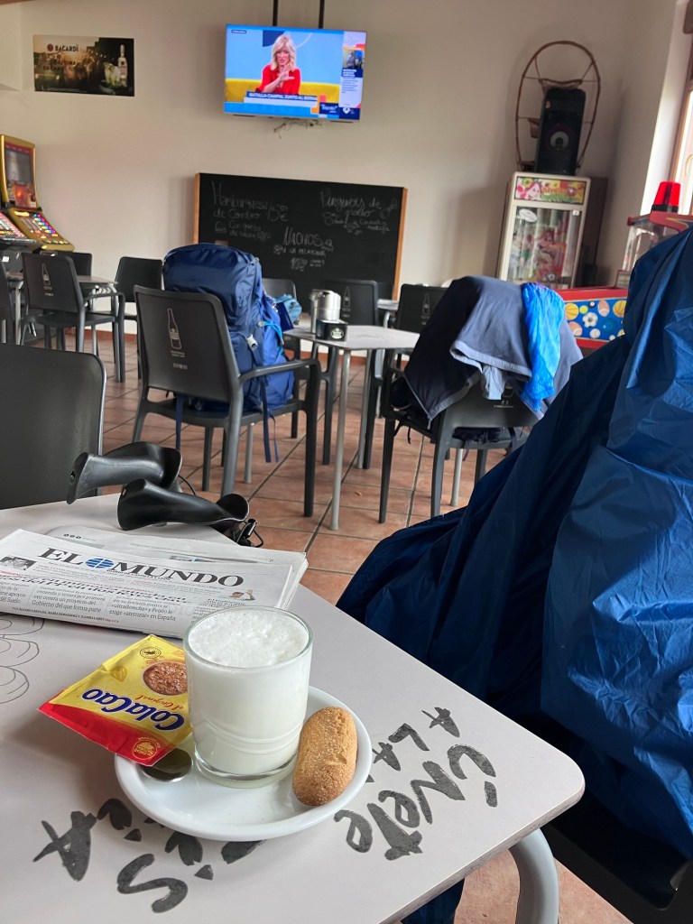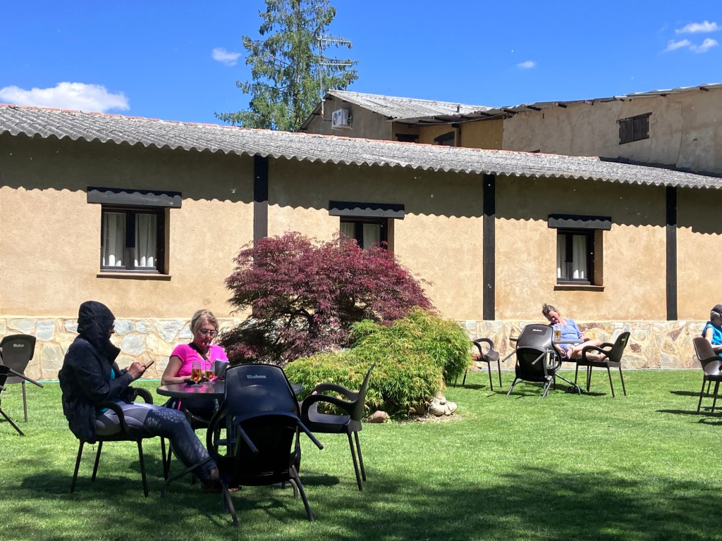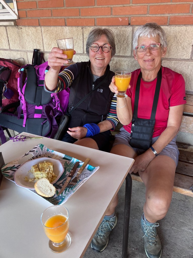 As I sat here ^^ eating my cheese on bread, I heard, “Hola, Rachelle”. It was A, one of the French tribe from the past few days, the only one walking on her own. Spanish is our only common language so we bumble along with that (she’s pretty good actually and provides me with the correct version of words I try making up!!) She had asked to sit at the table with me this morning as I had breakfast and had said the other French ladies had told her to look at my credential. When she saw the pages in the monastery she told me she had been in a monastery for two years and still wanted to be. I thought about that as I walked today and so when she called out to me, I knew I was going to tell her I had been thinking about her (which surprised her and made her feel special)…and because I don’t have the language skills to soften the question, I simply asked: why are you not in a monastery if you want to be?