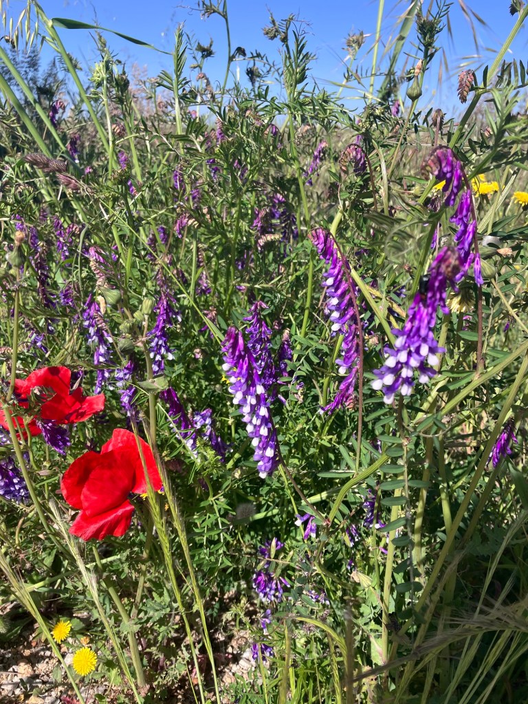 And some more of today’s joys were the blue sky and sunshine, flowers and (small patches of) forest.