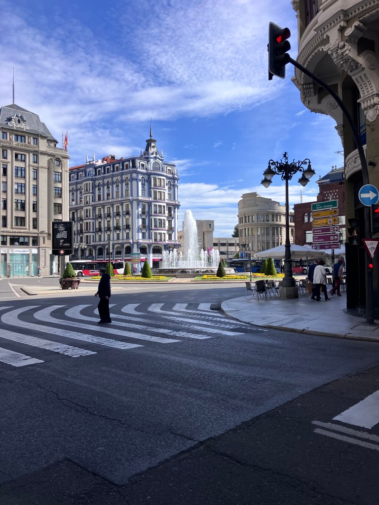 A popular tourist destination, especially famous for both its architecture and “cocido maragato”, a meal starting with six or seven meats, followed by chickpeas and cabbage, then soup and recommended to be topped off with custard, it was empty at 8am except for two girls who were going to the bus stop, a couple of people taking their dogs out for a walk and me.