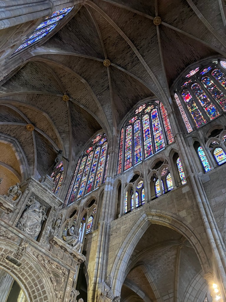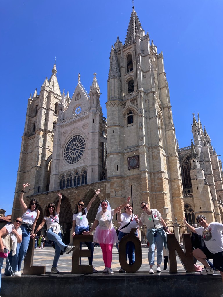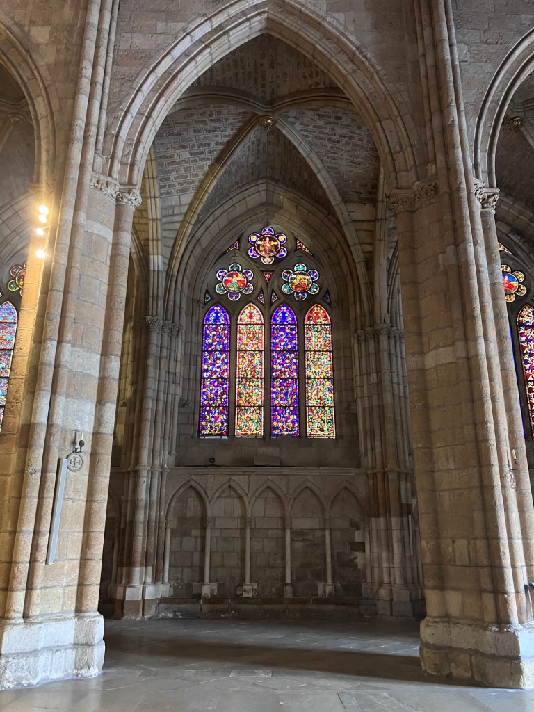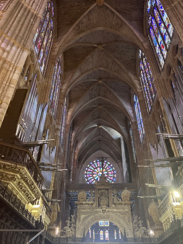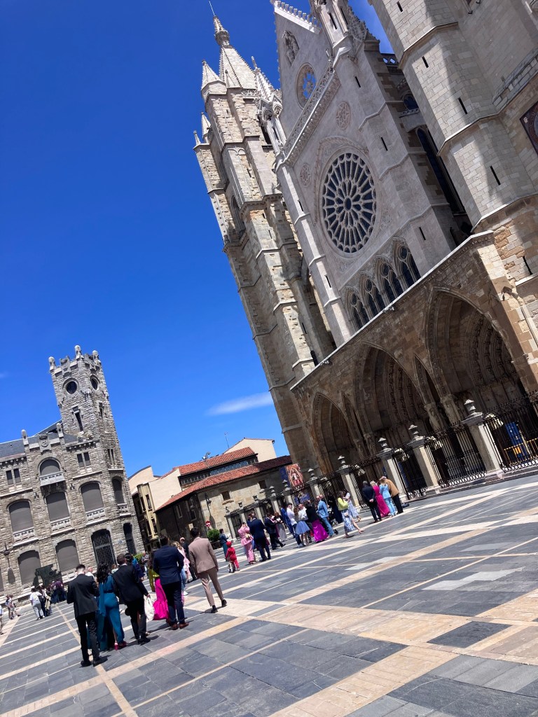 But I’m here, marking another milestone. I have been thinking of this camino in terms of cathedrals – Pamplona, Burgos, León, Astorga, Santiago. Here I am at the middle one. This is where we intended to start our first camino, the one with all eight kids and Grandpa back in 2012. After a week seeing the sights in Paris we had taken an overnight bus from there to León, and when we got here we didn’t immediately see a yellow arrow as we had been promised and we couldn’t even see the cathedral towers, so we booked the next bus to Astorga, figuring it would be easier to start somewhere smaller. It was! Then when four children and I walked this way in 2014, we turned right at León to head up the San Salvador. The next time we were here we were repeating that same route. So León to Astorga is unfinished business. Astorga is not only a cathedral city, but also marks the end of the meseta, and so I’ll have a special post to celebrate that. GraphGuy has been busy at work behind the scenes for that – you’re in for another treat.