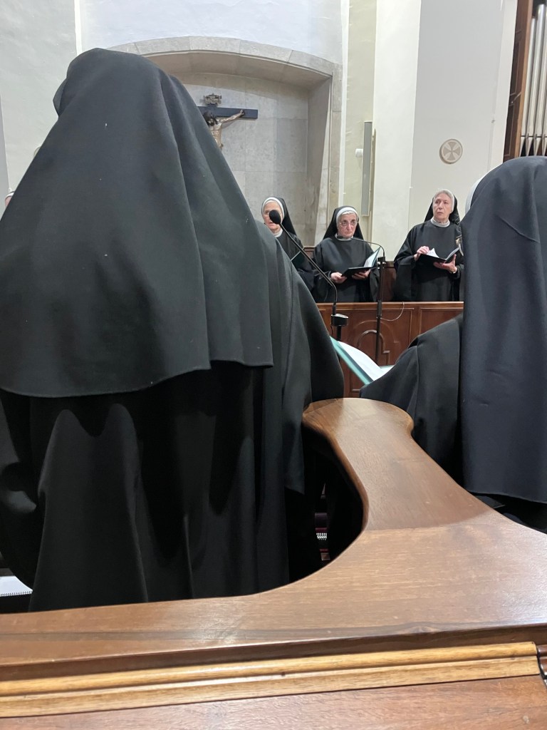 7pm Vespers with the nuns from the convent. My week at the monastery back at the beginning served me well. This time we were invited to sit in the choir stalls.