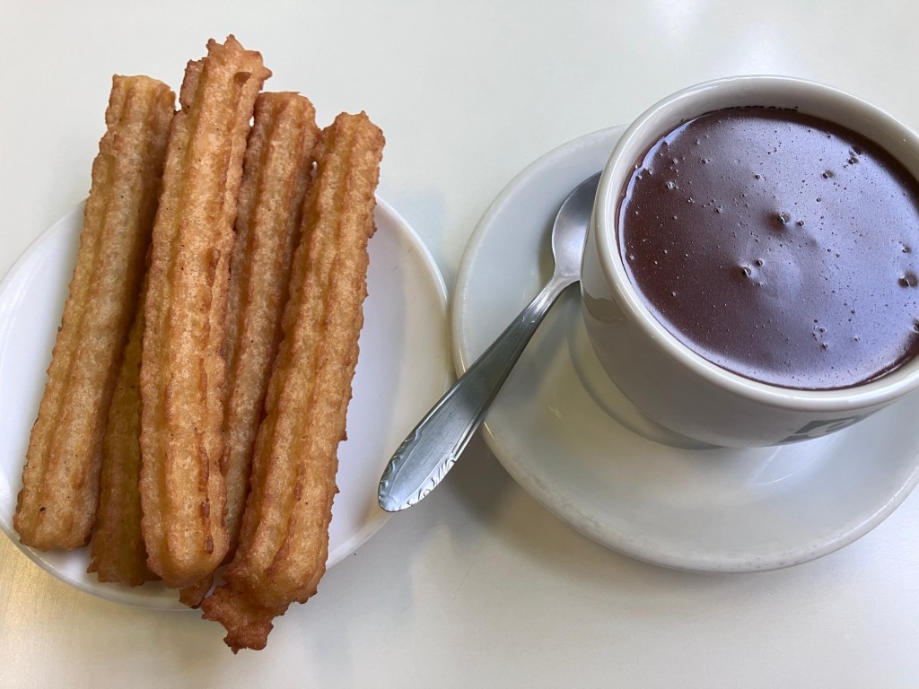 Everyone else was eating theirs with coffee, but I asked for chocolate. It was made on the spot – fluffy milk with spoonfuls of chocolate powder mixed in until it almost couldn’t pour out of the jug. Silky smooth.
