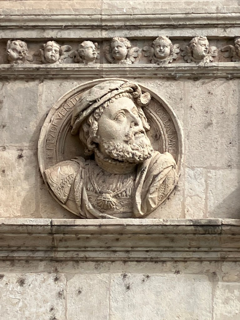 But back to today. Having set me on the right path, this old lady proceeded to tell me that the king and his FOUR wives were in the church I was looking at. Did I understand that? Four!! A young guy came by and asked to take my photo – he was delighted that a pilgrim was drawing his town, and he too wanted me to know that the king’s tomb was just across the road. He was most pleased to hear I had seen it last night at mass. Then an old man stopped for a chat. Eventually I got moving.