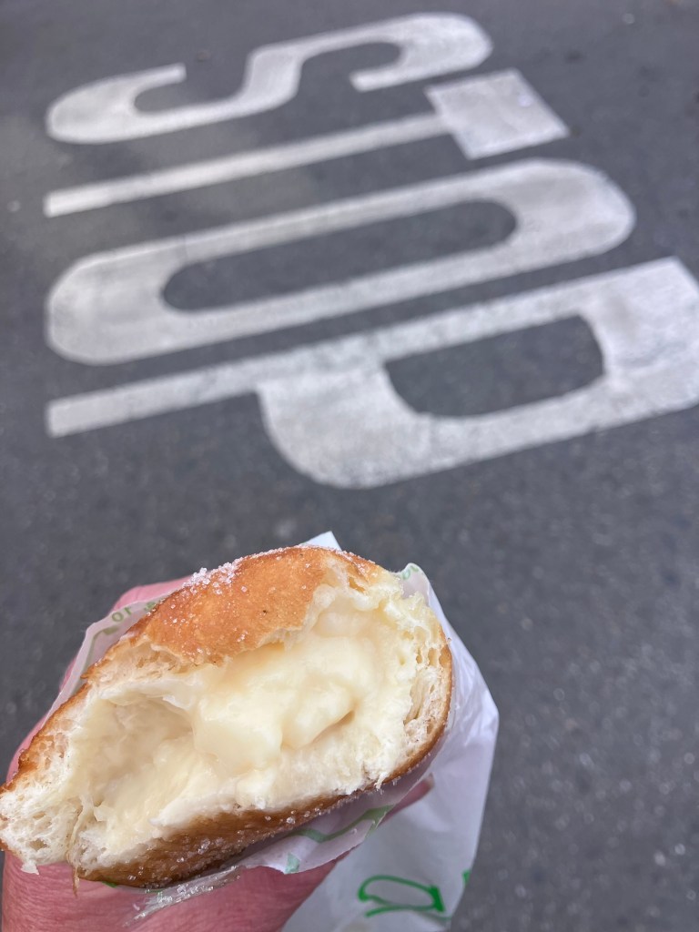 A soft-inside-with-crispy-outside doughnut filled with a perfect custard and liberally sprinkled with sugar. When you’re in a city, it’s worth making the most of these opportunities.