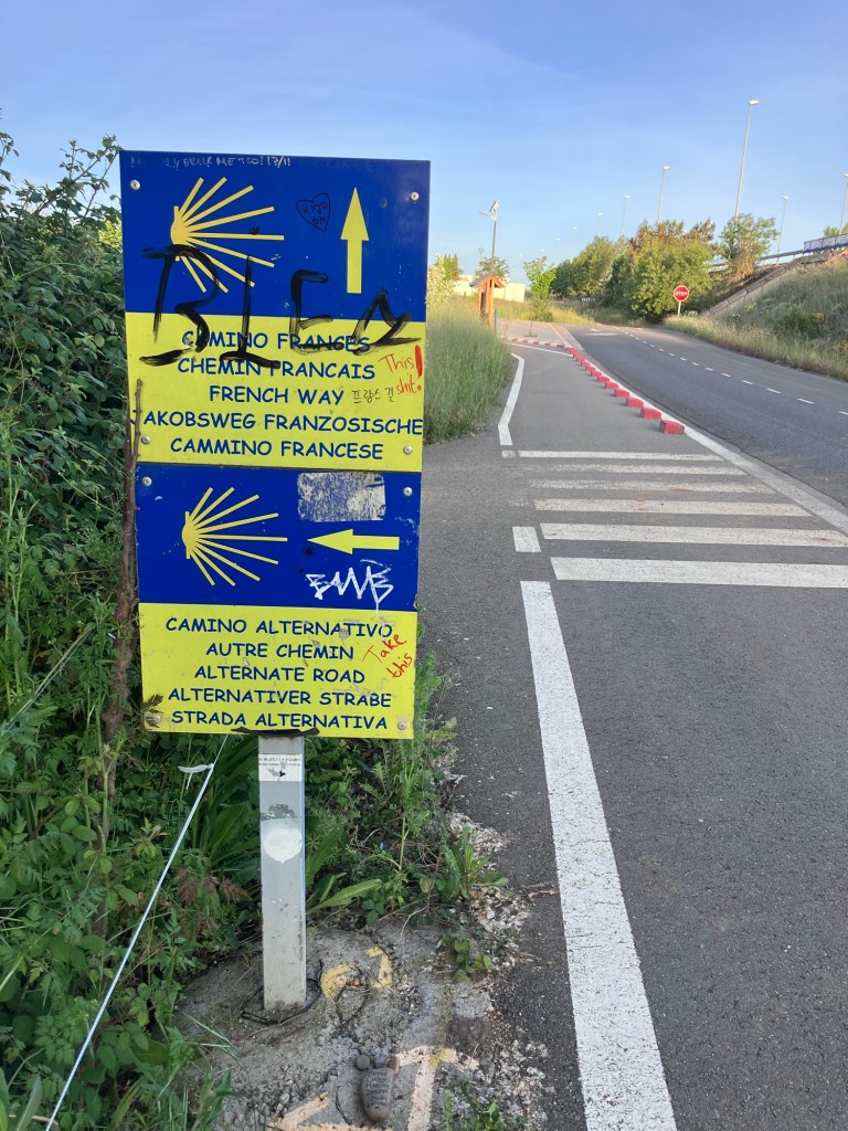 Someone with a red marker had a strong opinion about which of the two options was best to take today. The hospitalero where I stayed last night did too, and had tried to convince everyone to take the “not sh*t” route, which was a little longer, but not beside a main road with trucks hurtling past. It was a no-brainer decision.