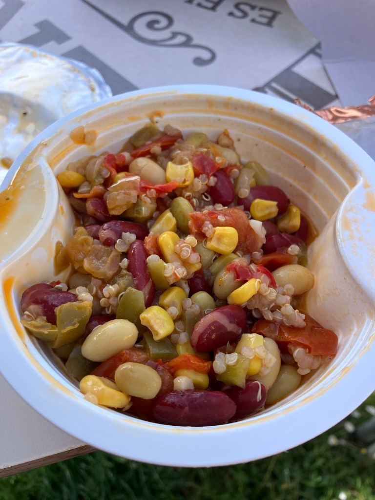 The tiles on the floor acted as a makeshift fridge to keep my salad cool until dinner time. Success.