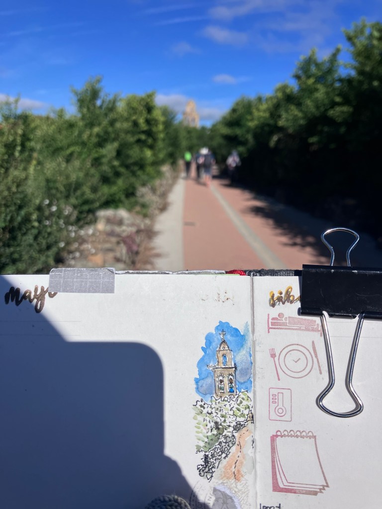 Quick it was not. Not by the time a German couple had stopped to tell me I must have more time than other people because they had seen me painting yesterday morning and now here I was drawing today! I believe we walked the same distance and had the same number of hours to do it in!